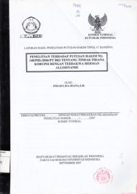 Laporan Hasil Penelitian Putusan Hakim Tingkat Banding: Penelitian Terhadap Putusan Hakim No. 148/PID./2006/PT DKI Tentang Tindak Pidana Korupsi Dengan Terdakwa Herman Allositandi