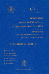 Undang-Undang Larangan Praktek Monopoli dan Persaingan Usaha Tidak Sehat = Law Concerning Prohibition of Monopolistic Practices and Unfair Business Competition : Undang-Undang No. 5 Tahun 1999