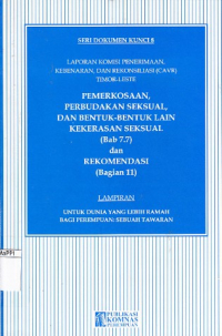 Pemerkosaan, Perbudakan seksual, dan Bentuk-Bentuk Lain Kekerasan Seksual (Bab 7.7) dan Rekomendasi (Bagian 11) ; laporan komisi penerimaan, kebenaran, dan rekonsiliasi (CAVR) Timor-Leste