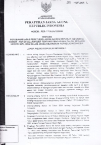 Peraturan Jaksa Agung Republik Indonesia Nomor: PER-035/A/JA/12/2009 Tentang Perubahan Atas Peraturan Jaksa Agung Republik Indonesia Nomor: PER-064/A/JA/07/2007 Tentang Pengadaan Calon Pegawai Negeri Sipil dan Calon Jaksa Kejaksaan Republik Indonesia