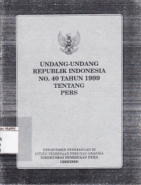 Undang-Undang Republik Indonesia No. 40 Tahun 1999 Tentang Pers