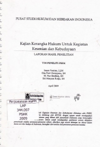 Kajian kerangka hukum untuk kegiatan kesenian dan kebudayaan : laporan hasil penelitian