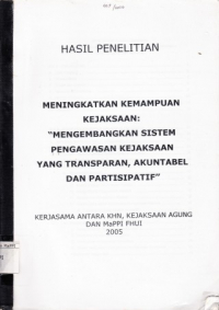 Meningkatkan kemampuan kejaksaan : "mengembangkan sistem pengawasan kejaksaan yang transparan, akuntabel, dan partisipatif" : hasil penelitian