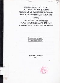 Perubahan atas keputusan Panitera/Sekretaris Jenderal Mahkamah Agung epublik Indonesia nomor : MA/PANSEK/02/SK tahun 1986 tentang organisasi dan tata kerja Kepaniteraan/Sekretariat Jenderal Mahkamah Agung Republik Indonesia