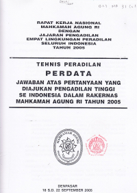 Rapat kerja nasional Mahkamah Agung RI dan jajaran Pengadilan empat lingkungan peradilan seluruh Indonesia tahun 2005 : tehnis peradilan perdata jawaban atas pertanyaan yang diajukan pengadilan tinggi