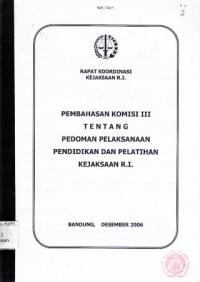 Pembahasan komisi III tentang pedoman pelaksanaan pendidikan dan pelatihan Kejaksaan R.I. : rapat koordinasi Kejaksaan R.I.