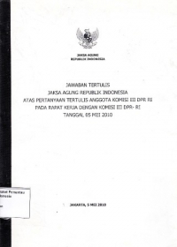 Jawaban Jaksa Agung Republik Indonesia atas pertanyaan tertulis pada rapat kerja antara komisi III DPR-R.I. dengan Jaksa Agung R.I.