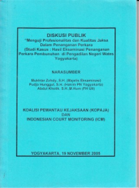 Menguji profesionalitas dan kualitas Jaksa dalam penanganan perkara : studi kasus hasil eksaminasi penanganan perkara pembunuhan di Pengadilan Negeri Wates Yogyakarta : diskusi publik