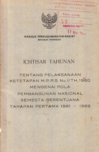 Ichtisar Tahunan tentang Pelaksanaan Ketetapan MPRS No. II Tahun 1960 mengenai Pola Pembangunan Nasional Semesta Berentjana Tahapan Pertama 1961-1969