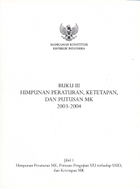 Buku III Himpunan Peraturan, Ketetapan, dan Putusan MK 2003-2004 : Jilid 1 Himpunan Peraturan MK, Putusan Penguji UU terhadap UUD, dan Ketetapan MK