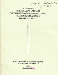 Pedoman Seminar Akbar Limapuluh Tahun Pembinaan Hukum sebagai Modal bagi Pembangunan Hukum Nasional dalam PJP II
