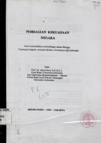 Pembagian Kekuasaan Negara : suatu penyelidikan perbandingan dalam hukum tatanegara Inggris, Amerika Serikat, Uni Soviet dan Indonesia