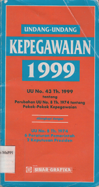 UU No. 43 Th. 1999 tentang Perubahan UU No. 8 Yh. 1974 tentang Pokok-Pokok Kepegawaian dilengkapi dengan UU. No. 8 Th. 1974, 6 Peraturan Pemerintah, 2 Keputusan Presiden