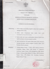 Peraturan Bank Indonesia Nomor : 3 / 10 / P.BI / 2001 Tentang Penerapan Prinsip Mengenal Nasabah (Know Your Customer Principles)