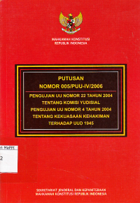 Putusan Nomor 005/PUU-IV/2006 Pengujian UU Nomor 22 Tahun 2004 Tentang Komisi Yudisial Pengujian UU Nomor 4 Tahun 2004 Tentang Kekuasaan Kehakiman Terhadap UUD 1945