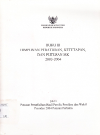 Buku III Himpunan Peraturan Ketetapan, Dan Putusan MK 2003-2004 : Jilid 4 Putusan Perselisihan Hasil Pemilu Presiden dan Wakil Presiden 2004 Putaran Pertama
